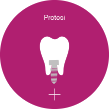 Sostituzione delle radici dei denti naturali, con impianti endoossei, in titanio per il singolo dente mancante o per tutta l’arcata, per creare un supporto alla protesi.